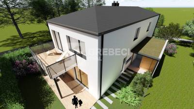 Popis budovy: murovaná stavba tehla hrúbky 30cm + tepelná izolácia hrúbky 20cm, stredová deliaca priečka akustická tehla hrúbky 20cm + tepelná izolácia 6cm + akustická tehla hrúbky 20cm, podlahové vykurovanie ako aj prípravu TUV zabezpečuje tepelne čerpadlo, plastové oná 3-sklo, 6 komorové, vonkajšie elektrické žalúzie.