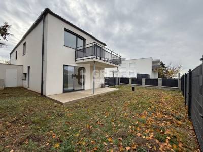 Ponúkame Vám na predaj nízkoenergetickú novostavbu 4 – izbového dvojdomu v Kittsee s energetickým certifikátom B (28,85 kWh/m2). Nehnuteľnosť sa nachádza na rohu ulíc Eisenstädter Strasse a Birkengasee. Dom je dvojpodlažný a má jedinečné dispozičné riešenie tak, aby majitelia mali dostatok súkromia nie len v dome ale aj na záhrade. Dostatok miesta na parkovanie vďaka 2 parkovacím miestam pred domom.
